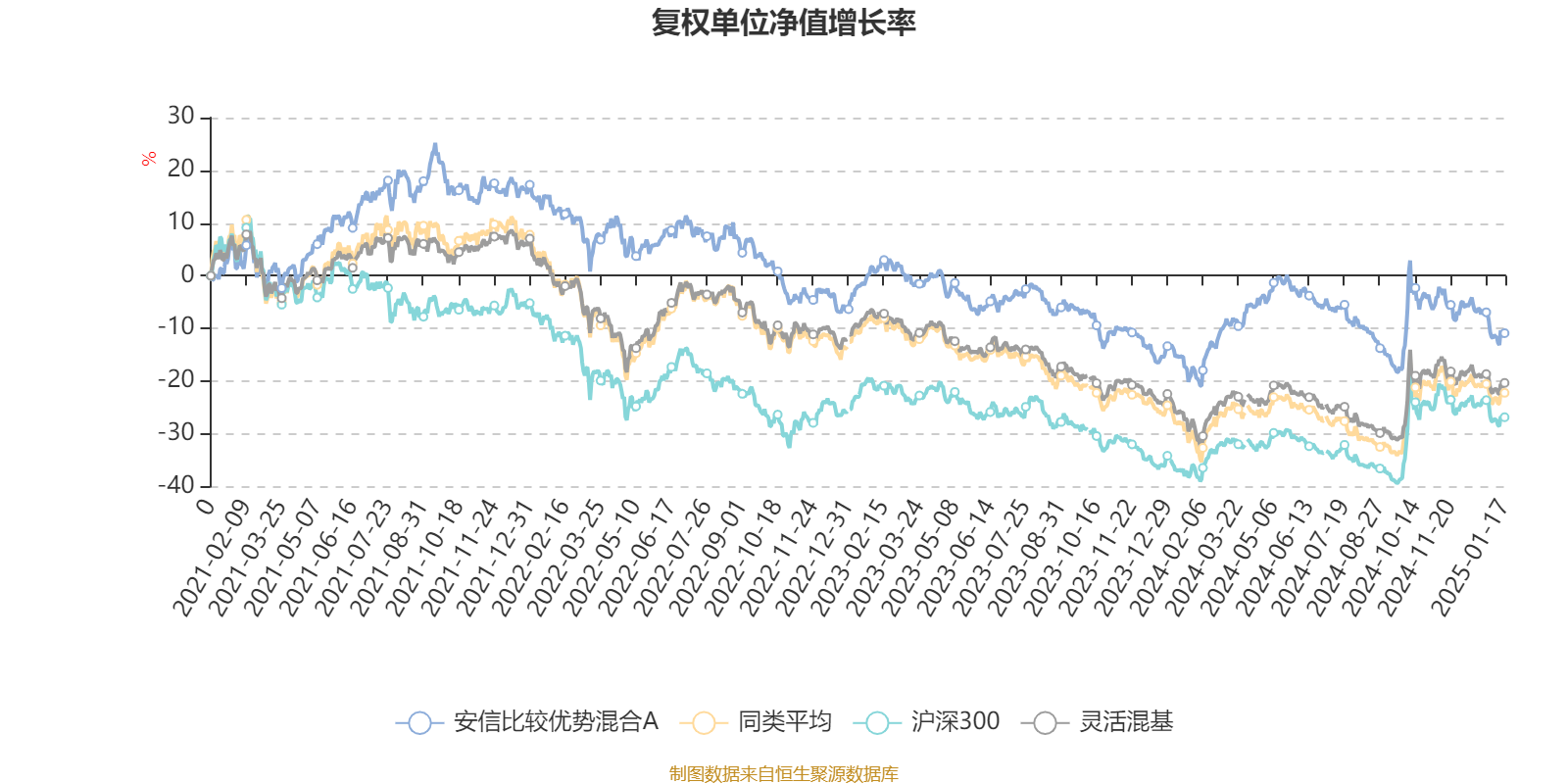 截至1月17日,安信比较优势混合A近三个月复权单位净值增长率为-4.83%,位于同类可比基金874/920;近半年复权单位净值增长率为-5.03%,位于同类可比基金886/920;近一年复权单位净值增长率为7.83%,位于同类可比基金535/920;近三年复权单位净值增长率为-21.66%,位于同类可比基金372/897。